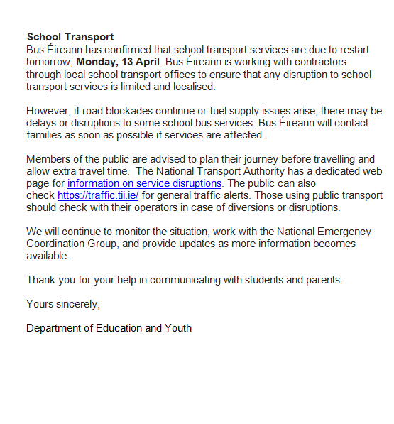 Notice from Department of Education and Youth